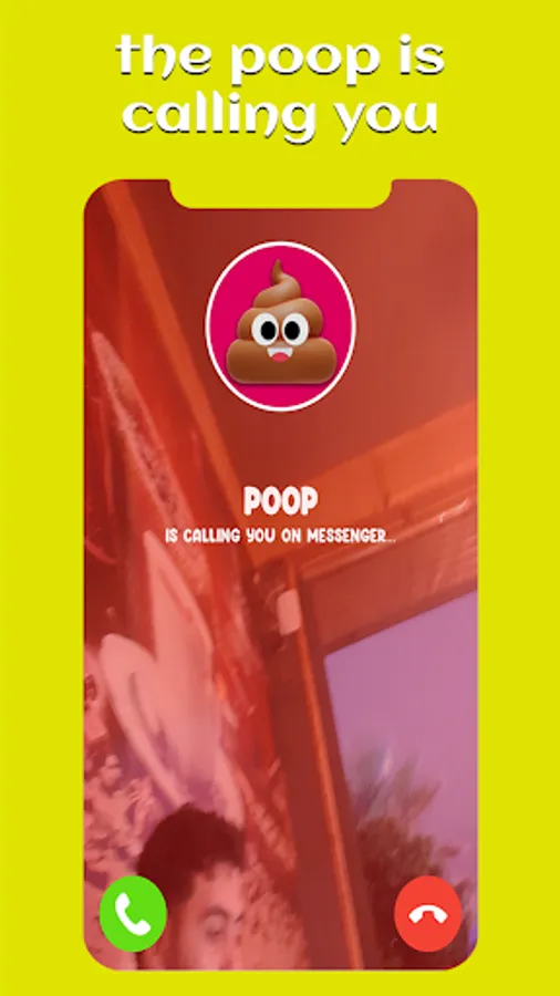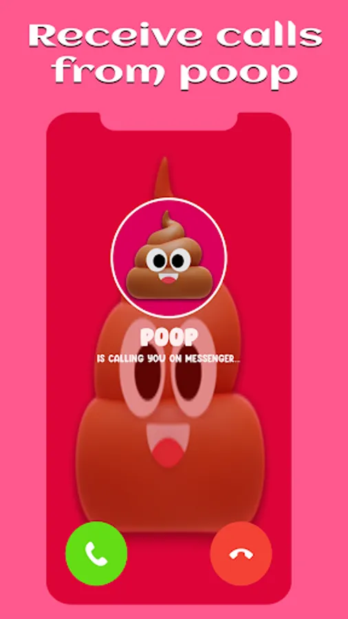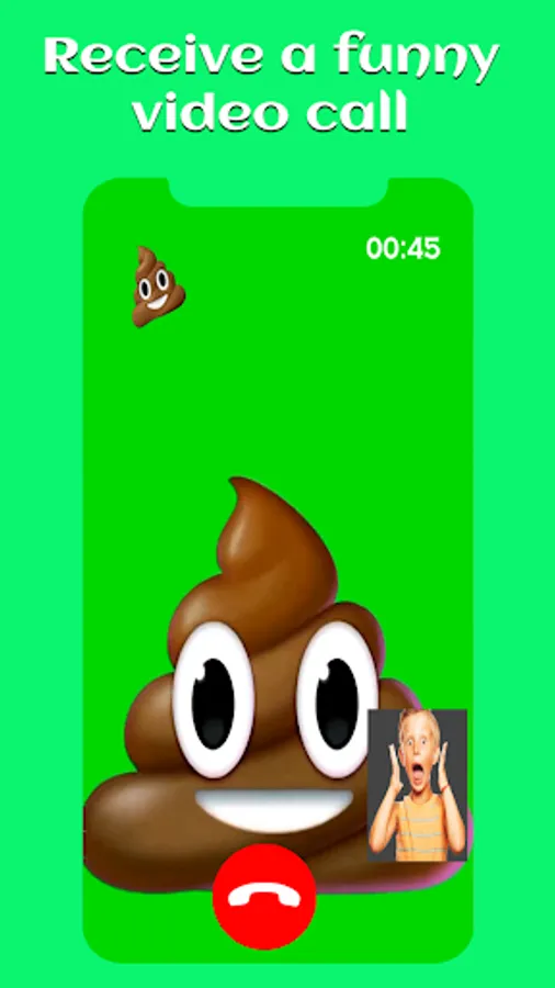 "Poop" Mod Video call and chat is a fake call video simulation app , you will receive a fake call and video call that looks like a real call, it is a joke game that allows you to prank your friends, bye receiving a call or a video call or a chat with Poop Mod, you have also the possibility to set some high quality wallpapers on your phone background, its a multiple option dial call app with a variety of calls and video calls and conversations bot.