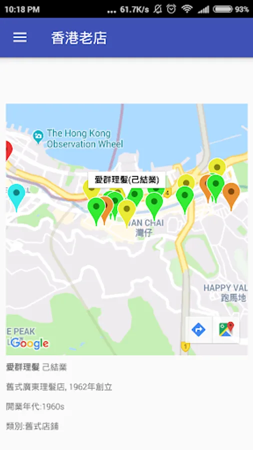 這個程式精選了300多間老店資料,包括開業日期、店舖簡介、類別及介紹網頁,在地圖上準確顯示老店的位置,希望大家有時間走訪一下,讓這懷舊的色彩和特色優質的產品能延續下去。