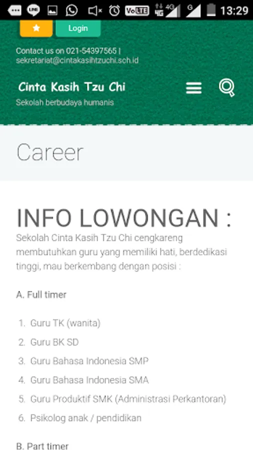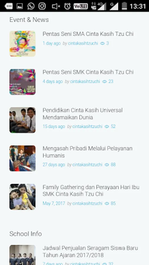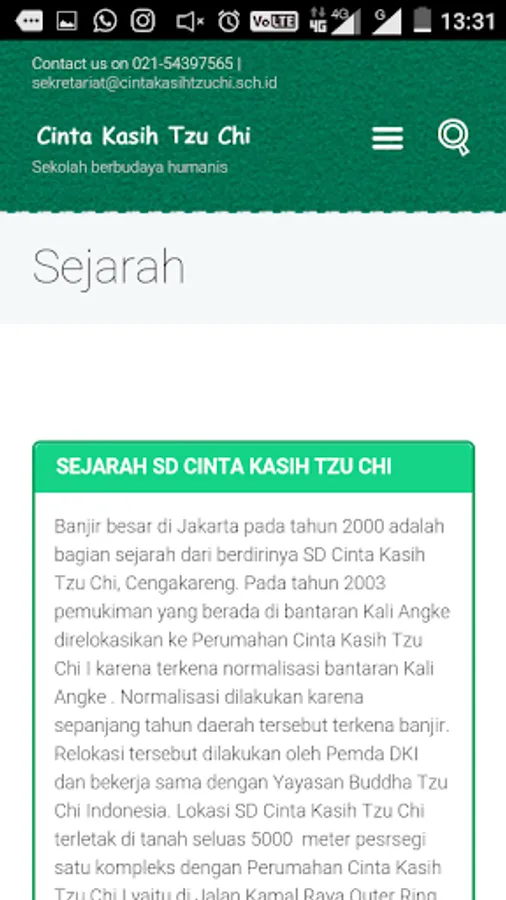 In this application there is a variety of information about the various activities at the School Tzu Chi Cengakareng.