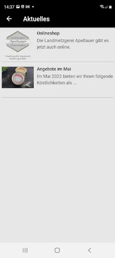 The app of the country butcher Apeltauer in Alfdorf-Vordersteinenberg. With a shop to order our quality products, information about offers and promotions as well as information about our butcher shop.
