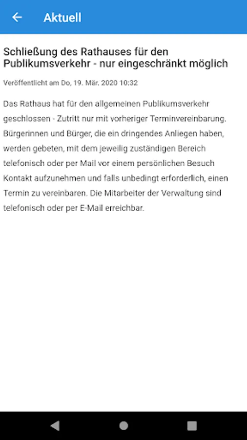Current information of the municipality, dates, and video messages from the mayor. Push messages on important events and everything worth knowing about the local government.
