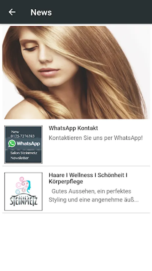 Information about the salon Steinmetz in Jugenheim and Reichelsheim. Impressions of the salon, ideas for your hair fashion. With loyalty points system - after 6 Visit receive a discount with scan a QR code.