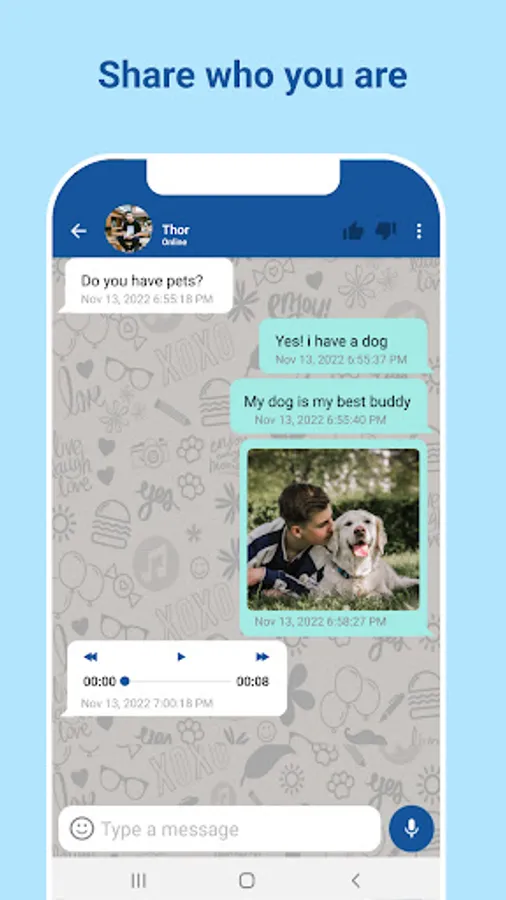 You will expand your network of pen pals and friends and you will be able to share audio, photos and videos to create fun chat conversations.