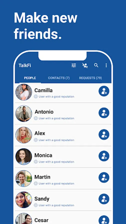 The TalkFi app allows you to choose which people you want to chat with and create a friendship with, no matter if they are near you or in another city.