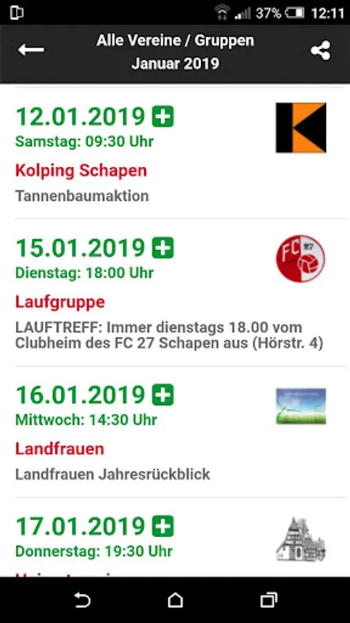This app provides information on dates of clubs, groups and associations from Schapen in Emsland. Simply select your group, the desired time period and the location dates can be displayed everywhere.