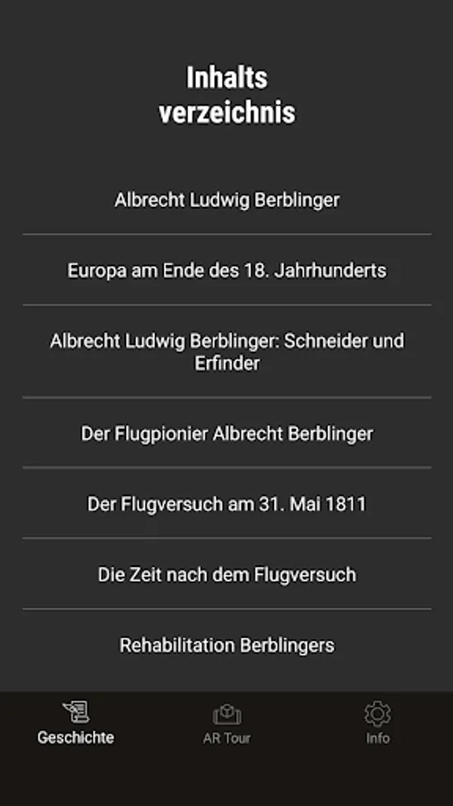 This app provides information about his life, the failed flight attempt and interesting information about the Berbling Tower.