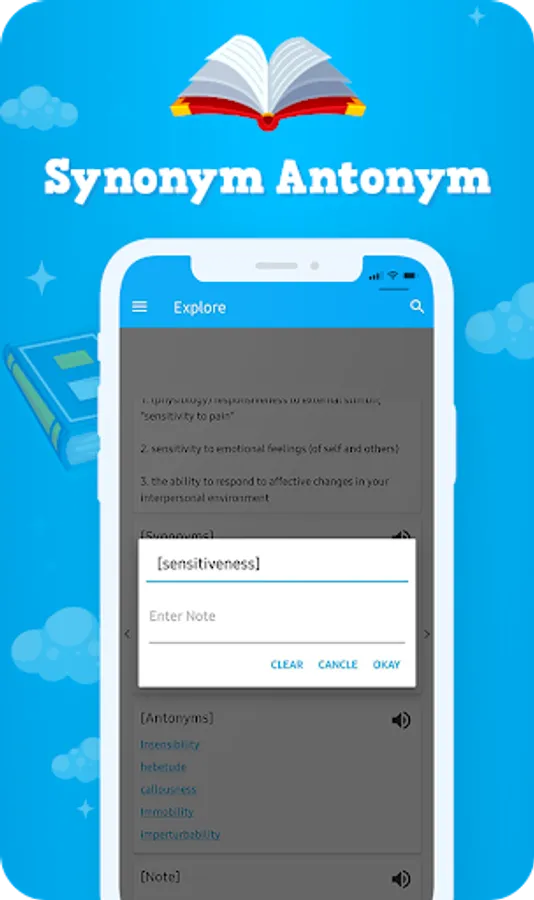 ynonym and Antonym more than 50k words and with search functionality. Its completely offline and free.Synonyms and Antonyms are very helpful for students and this app contains complete list of words like a dictionary. Like English dictionary it has lot of words.