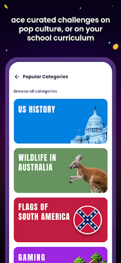 kids explore fun challenges on pop culture. play quizzes about your favorite disney movies or marvel / dc superheroes, tv shows, favorite teams/clubs, personalities and more.