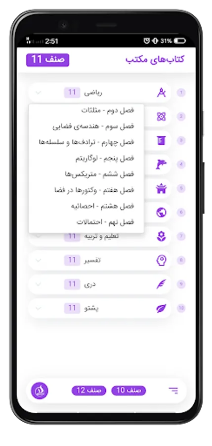 ✅ موجودیت درسها و فصلهای هر کتاب بهصورت جداگانه و مشخص برای دسترسی آسان و سریع