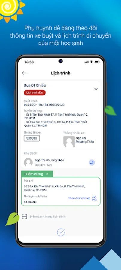 - Manage student bus schedule: Automatically announce through loudspeaker, display on monitor screen, notify via phone application for teachers in charge when parents pick up and drop off students.