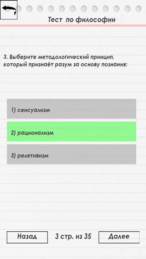 Using our collection of tests on philosophy, you can check both existing knowledge and acquire new ones, all you need to do is compare your answers with the correct ones, and draw the correct conclusion from this.