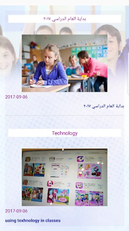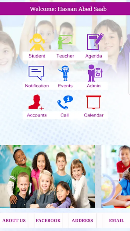 Admin's panel which contains all the features so in addition the previous panels it affords the ability to send notification messages to all or some of the students, the classes or the teachers and the ability to insert events, news and agenda also.