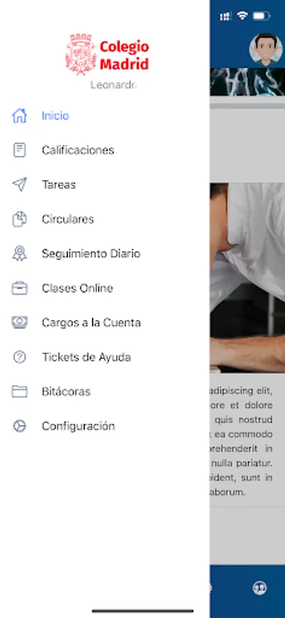 In the application, depending on the configuration of your study center, parents and students may have access to: