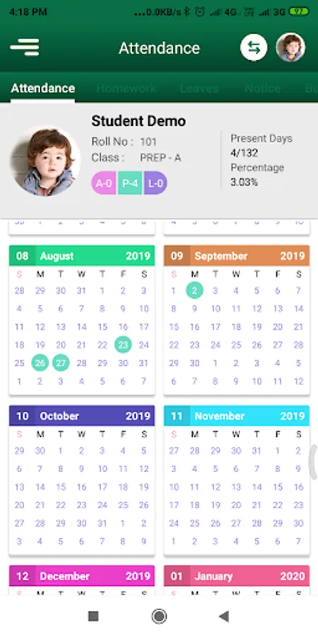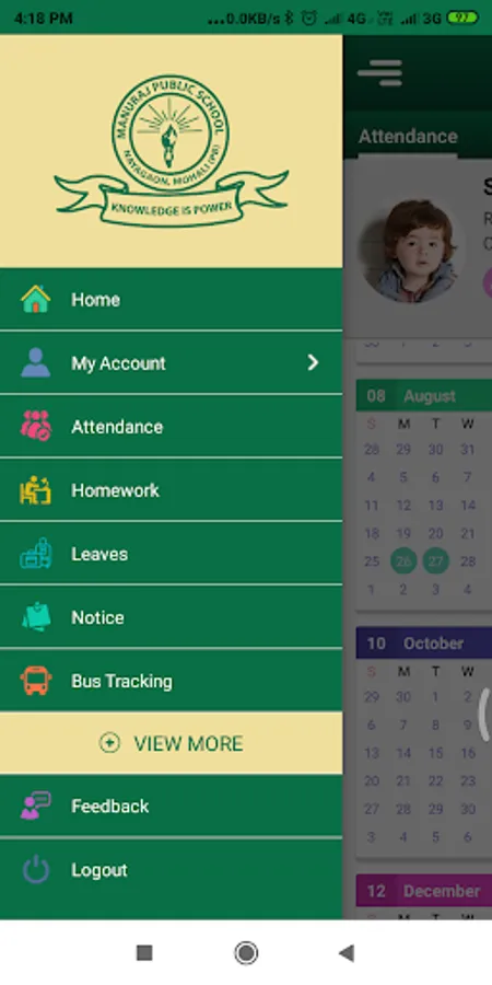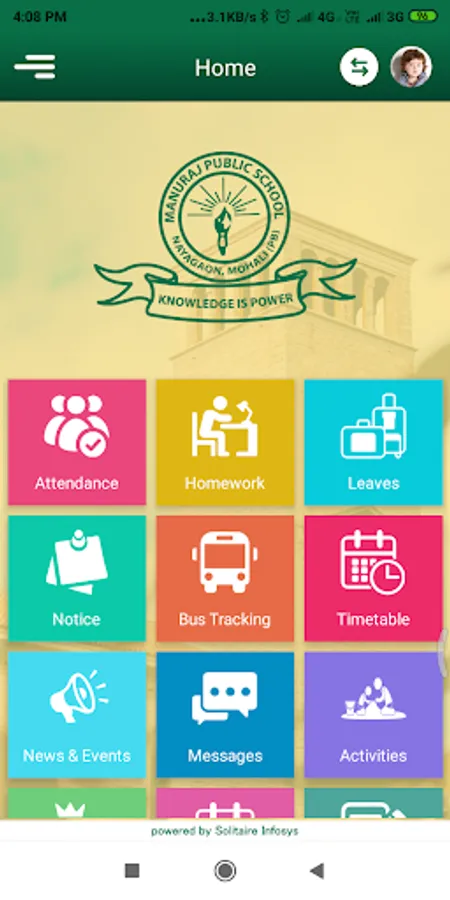 The app contains 3 modules – the Student/Parent module, the Teacher module, and the Principal module.