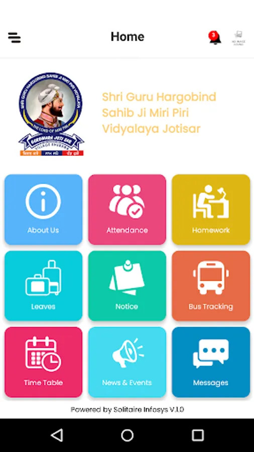 The app contains 3 modules – the Student/Parent module, the Teacher module, and the Principal module.