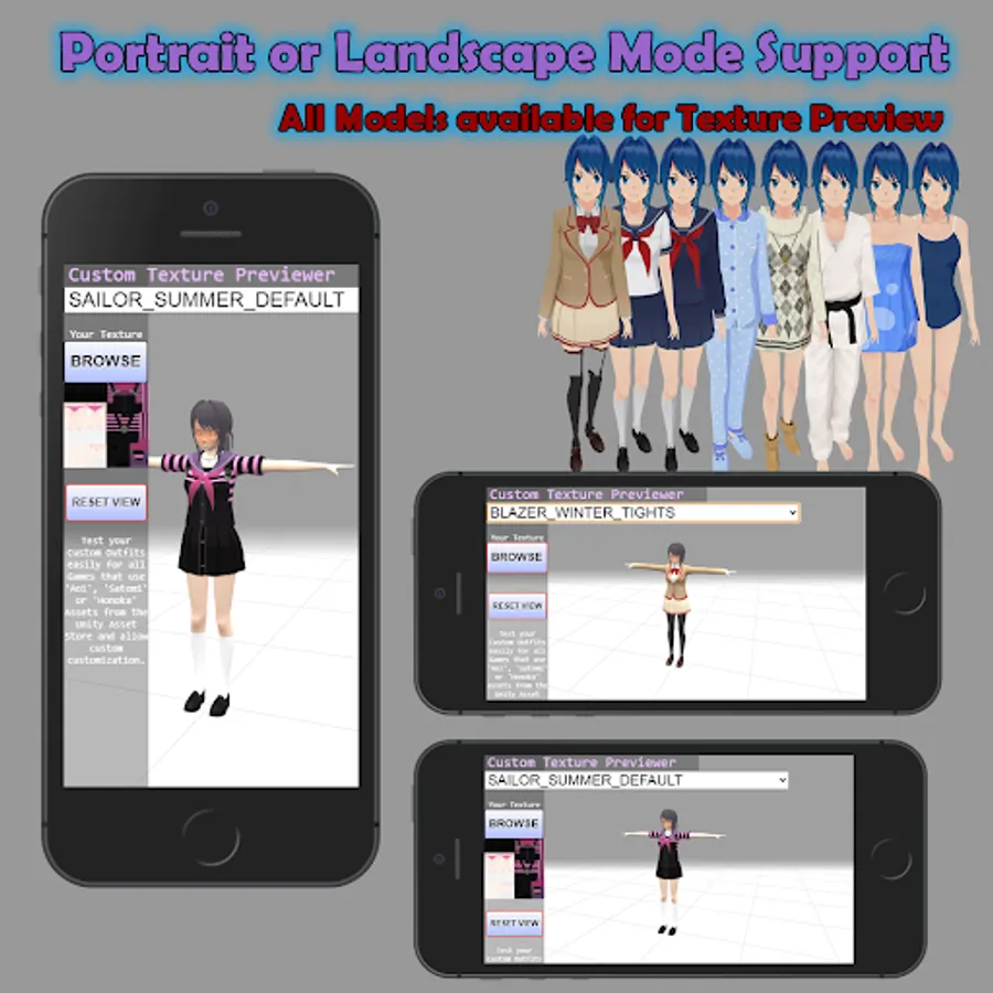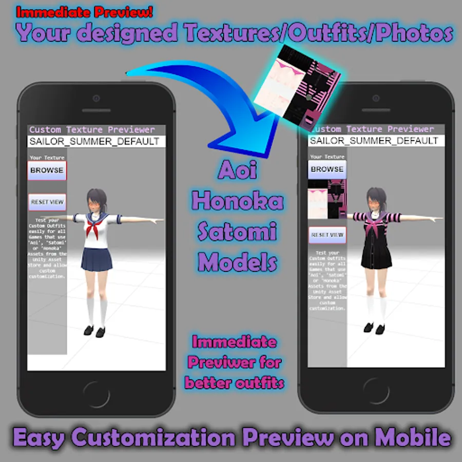 If you design custom textures for Aoi, Satomi and Honoka models you need a quick way to test your current textures on Mobile Devices.