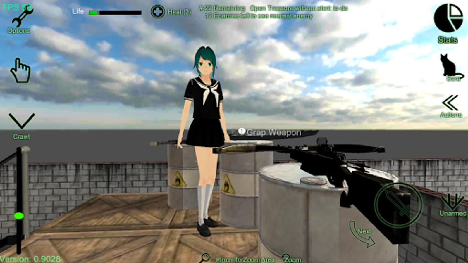 Double tab on the right half of the screen when the crosshair ('+') changes it's color to pick up weapon.