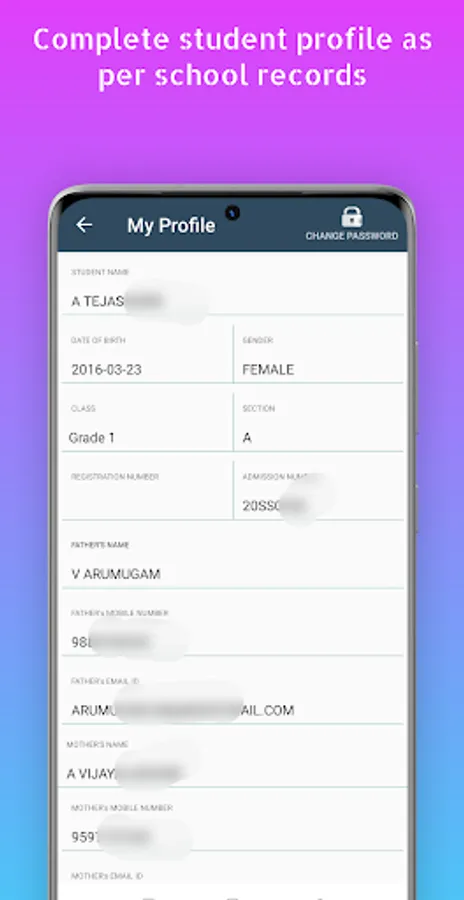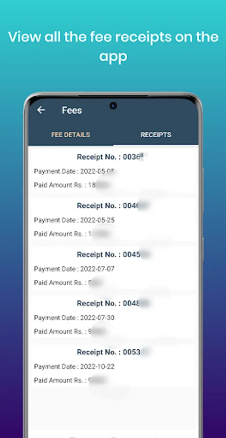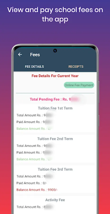 • Fee details – View the complete fee details (paid/balance/receipts)