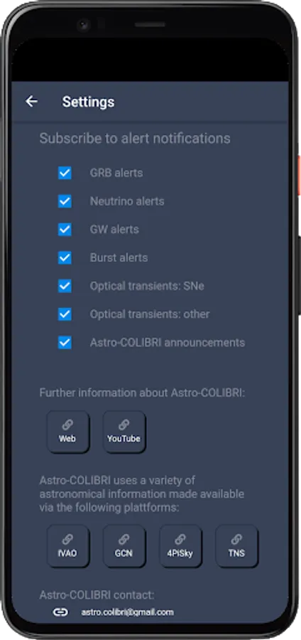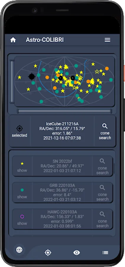Astro-COLIBRI notifies you immediately via push notification as soon as a new transient phenomena is detected.