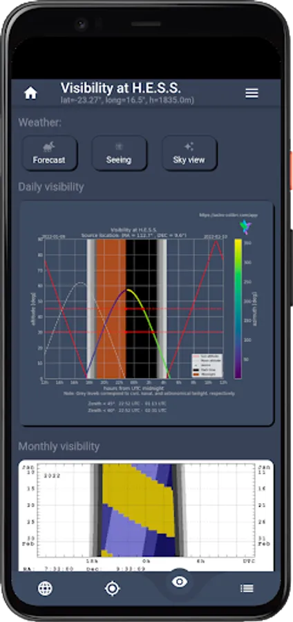 Astro-COLIBRI allows planning of optimal follow-up observations. It provides direct access to the visibility and weather conditions at all major astronomical observatories as well as user specified locations (e.g. your own backyard!) and thus enables quick and efficient planning of follow-up observations of the most interesting phenomena.