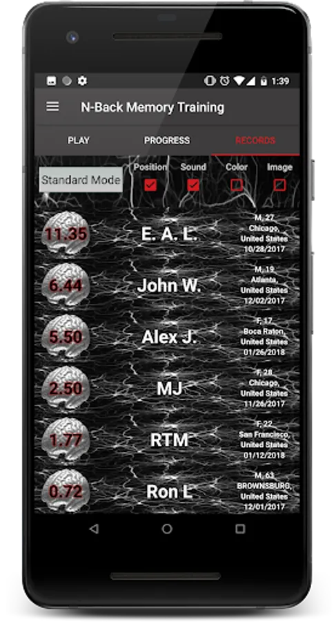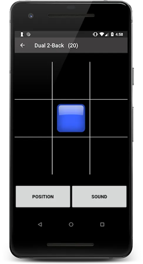 By default, the app starts on dual n-back, using positions and sounds (letters). The “dual” in dual n-back simply denotes how many different item types you will need to remember. You may choose any combination of item types, from single n-back to quad n-back.