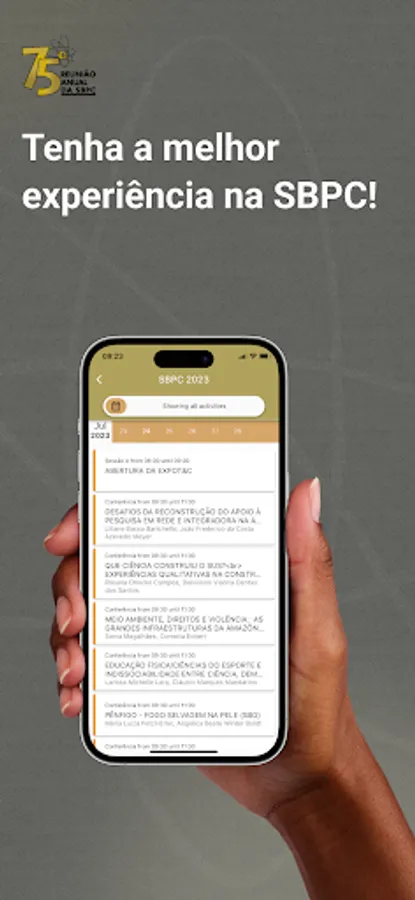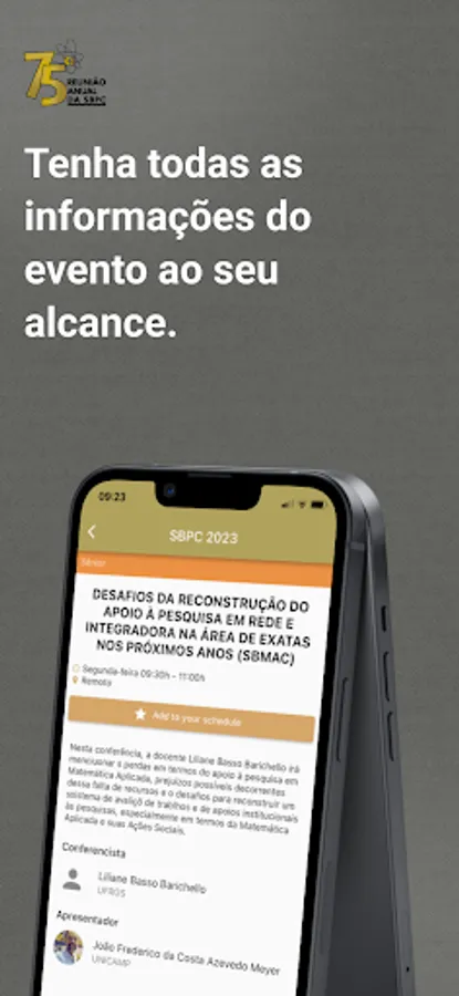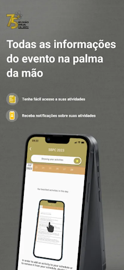 The SBPC application is free and allows access to all the content of the SBPC Annual Meeting, which will take place in Curitiba from July 23 to 29, 2023.