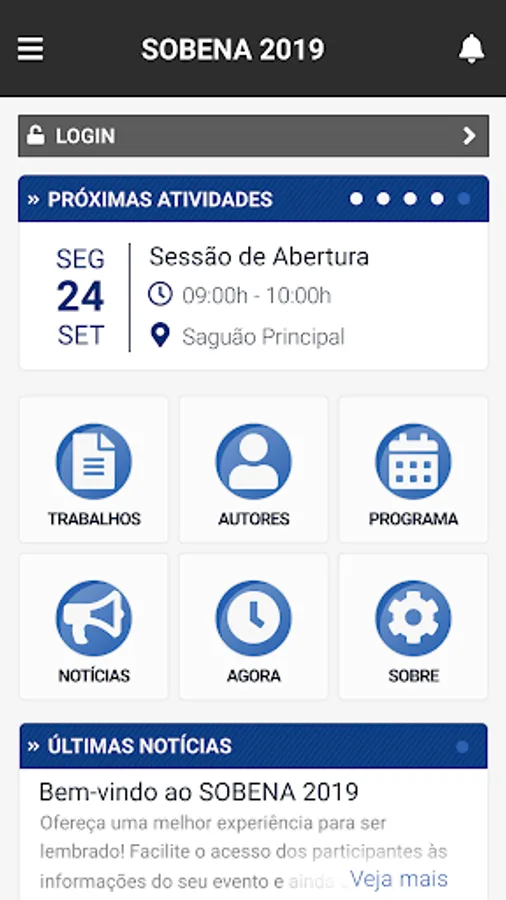 The SOBENA 2019 application is free and allows access to all content of the "11th International Seminar on Transport and Inland Waterway Development", which will take place in Brasilia-DF from October 22 to 24, 2019.