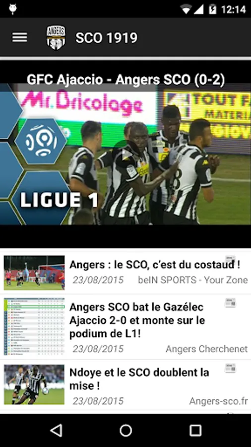The application for the football club Angers SCO by supporters of the site sco1919.