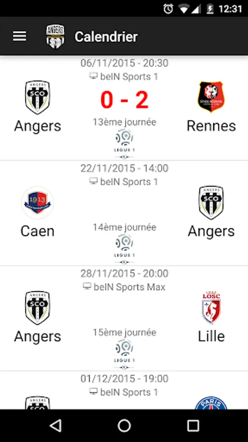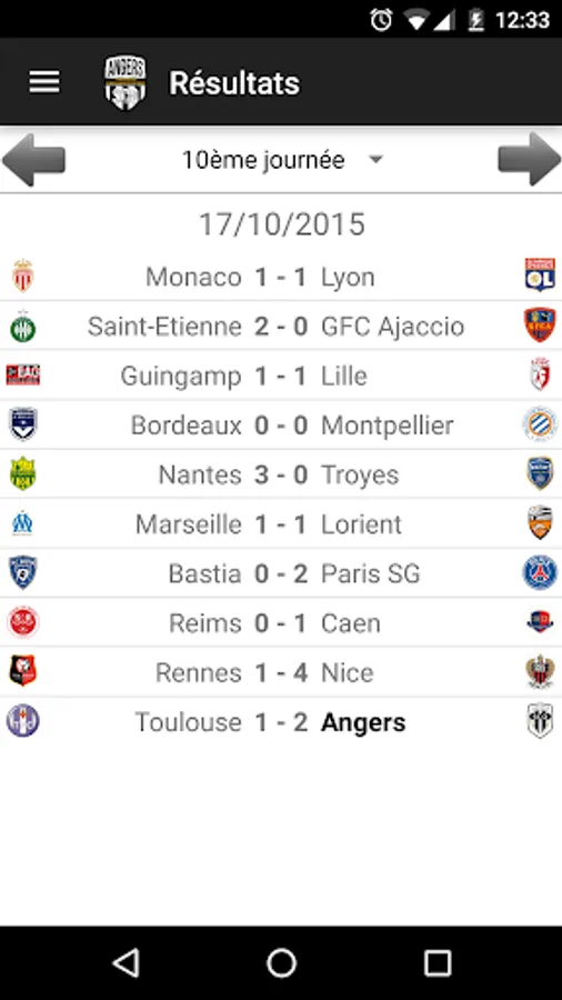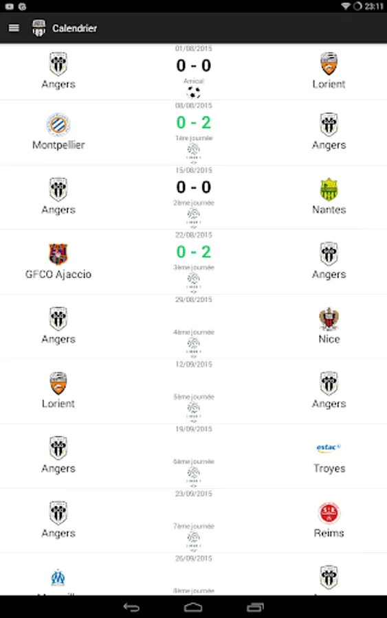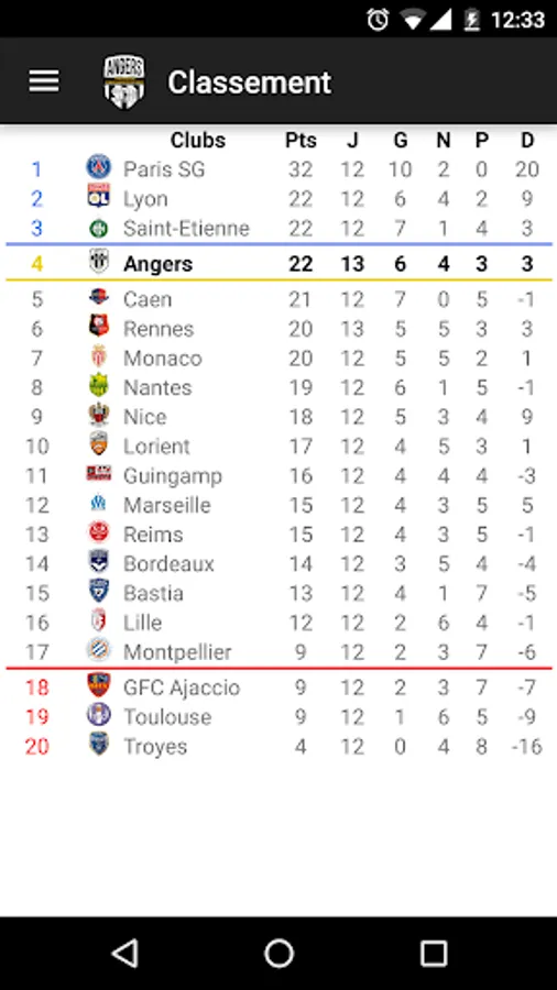 Note: Following the last update of the beginning of 2016-2017 season, if you have a problem with the classification (eg the classification of the previous season always present), please delete the application data and to restart the application or uninstall / reinstall. This should fix the problem.