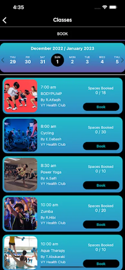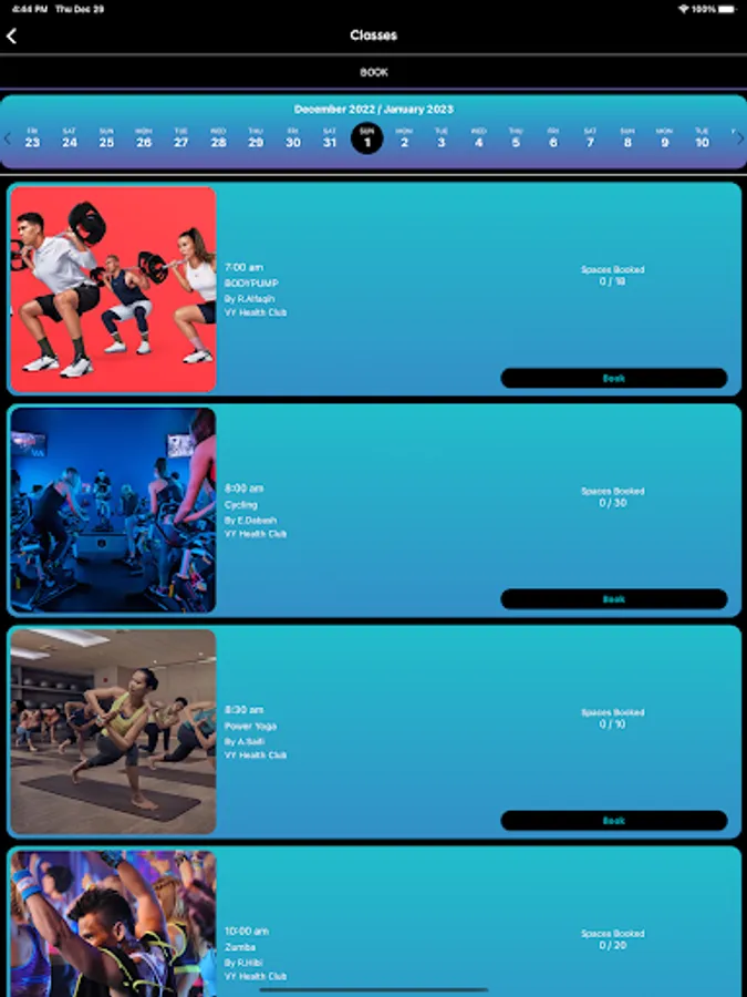 The VY Health Club app allows members to manage their membership profile and book various personal training and group exercise classes.