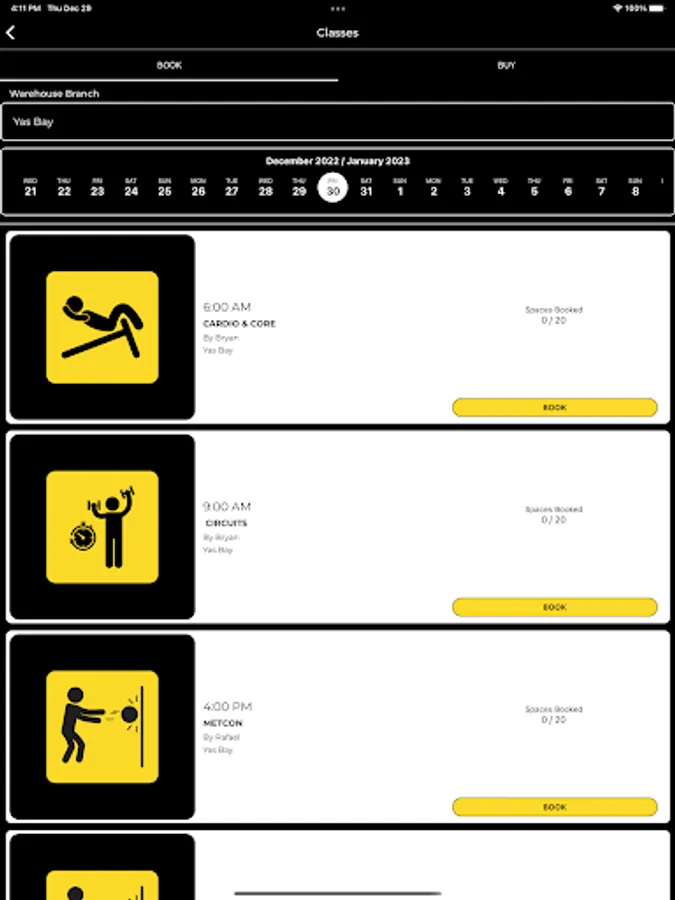 The Warehouse Gym app allows members to manage their membership profile and book various personal training and group exercise classes.