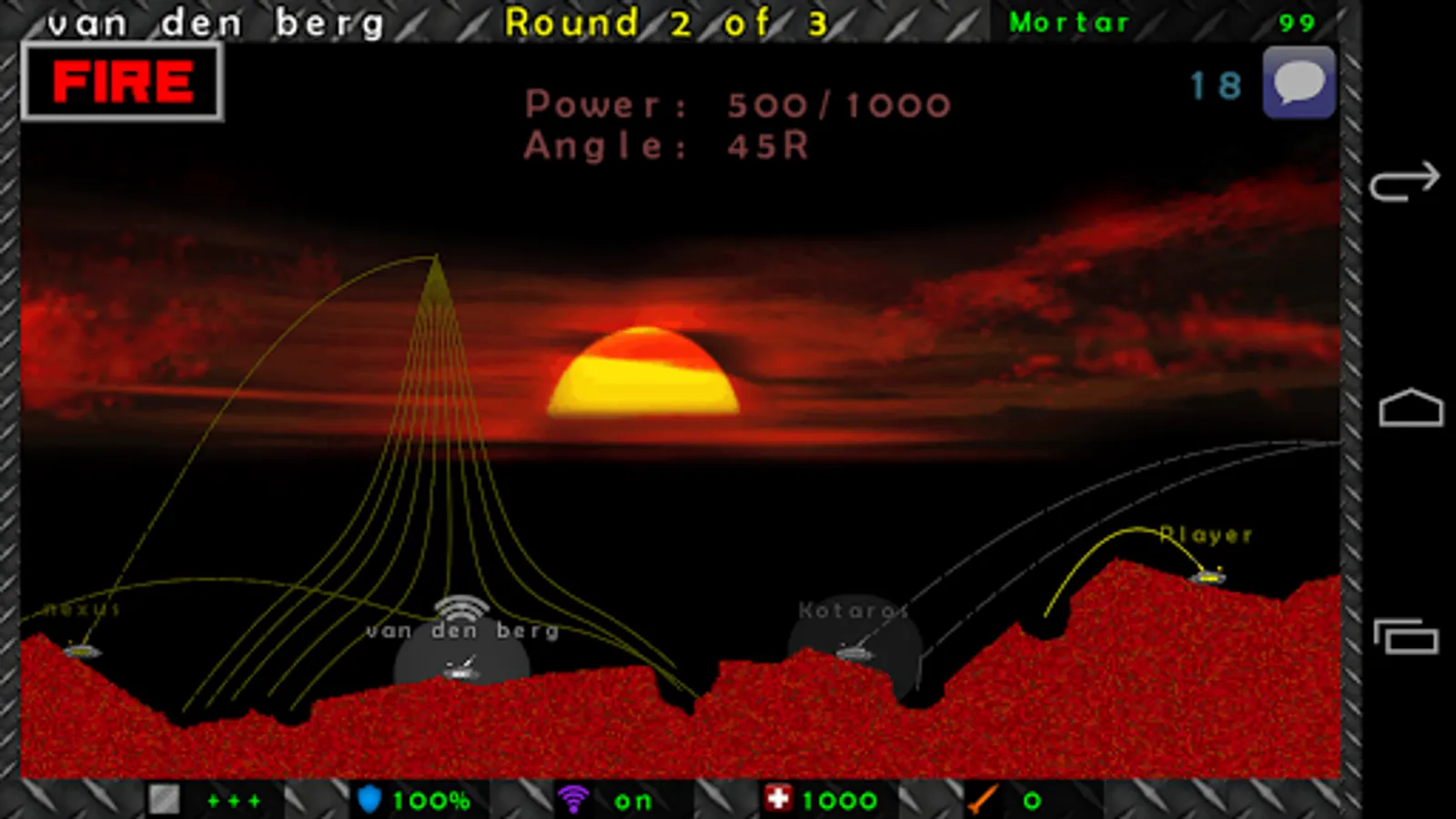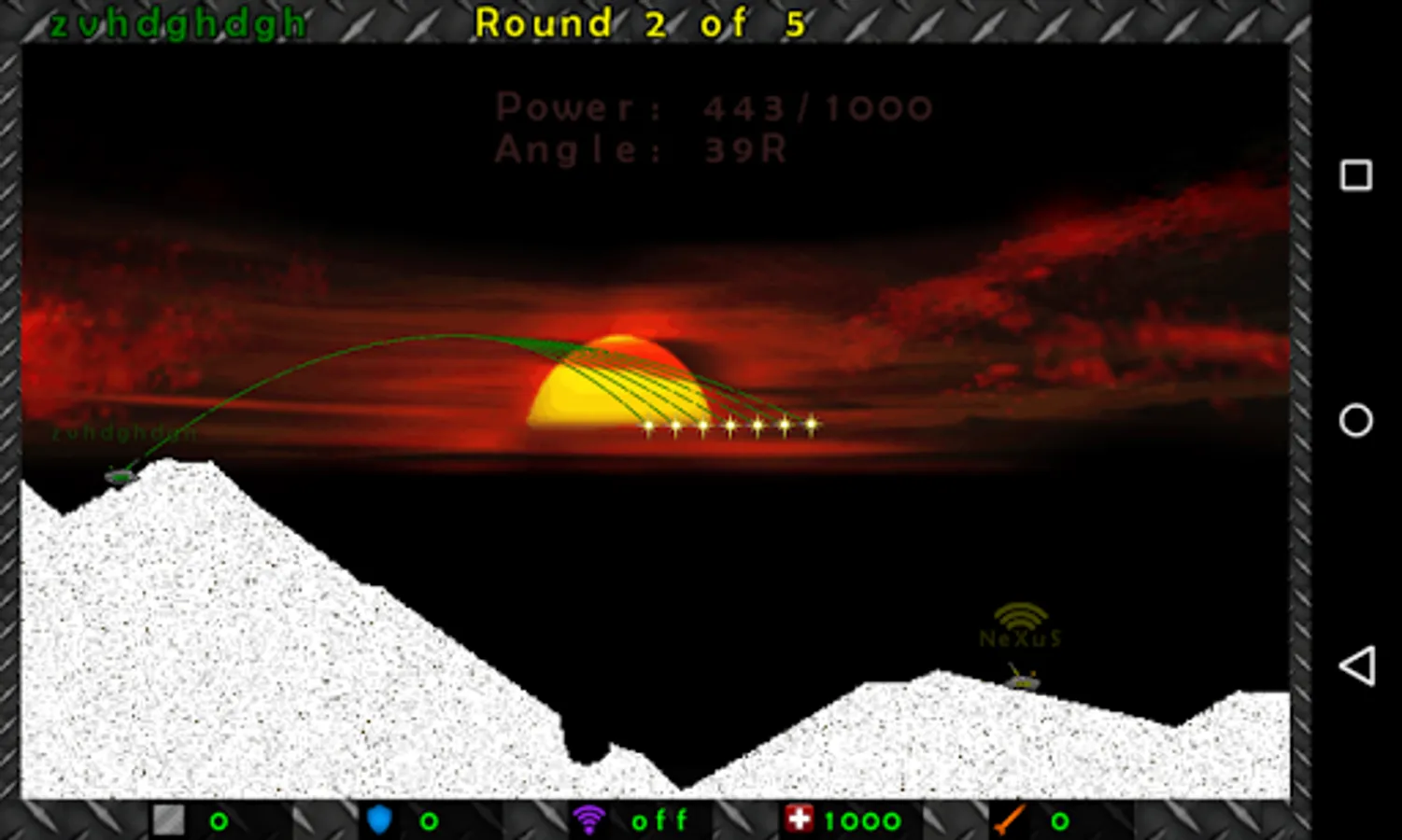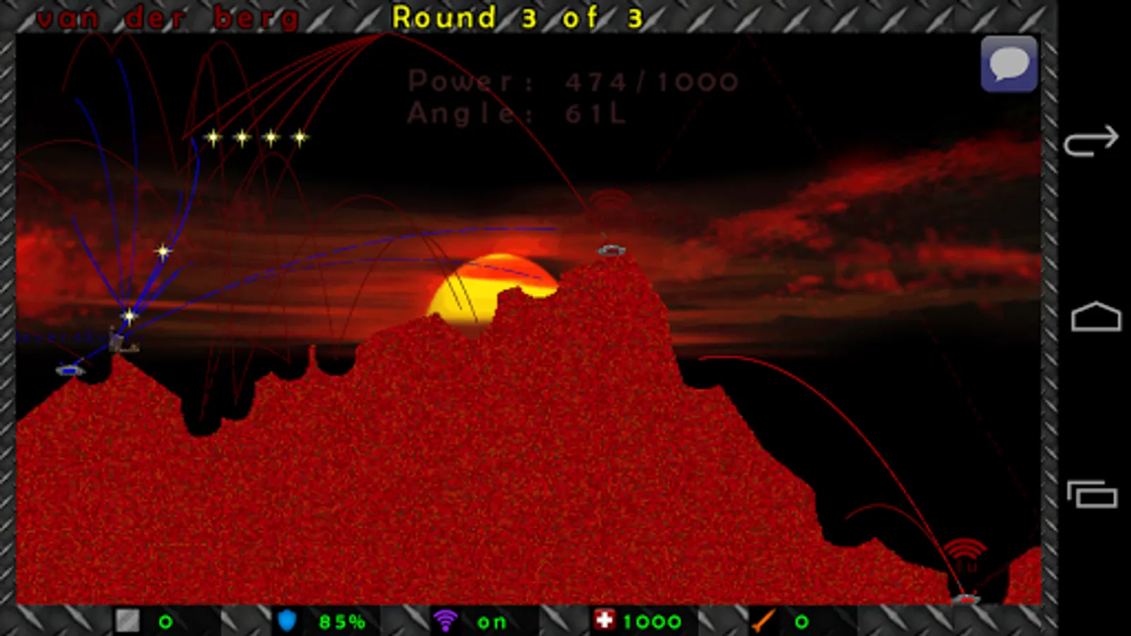 The game is turn-based, where each player controls his own artillery tank on a 2D battlefield. By rotating the tank's turret, selecting the correct force and weapon your goal is to damage your enemies until they run out of health and die. However beware, as the weapons may be used in many ways to create many interesting scenarios and only your planning and skill will be able to grant you victory.