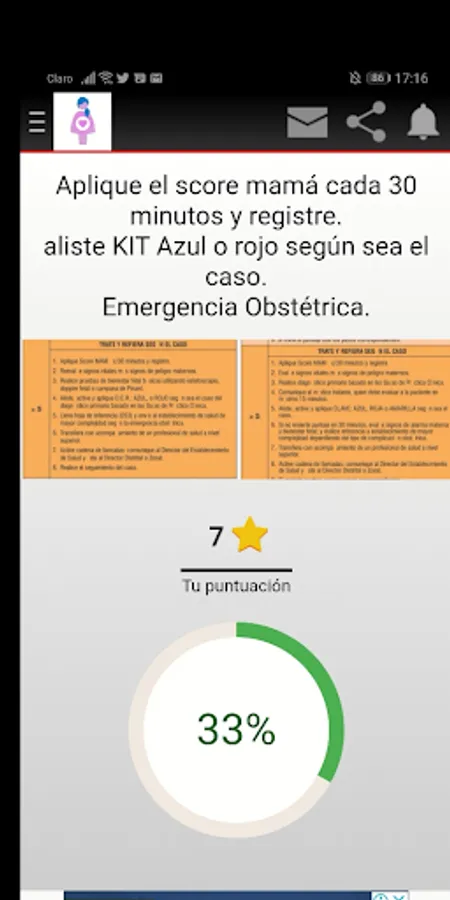 The MAMA Score is a scoring tool for risk detection, which is applied to the first contact in obstetric emergencies, at all levels of care. PURPOSE: to classify the severity of the patients, and to specify the necessary and timely action for the correct decision making, through the use of an objective tool.