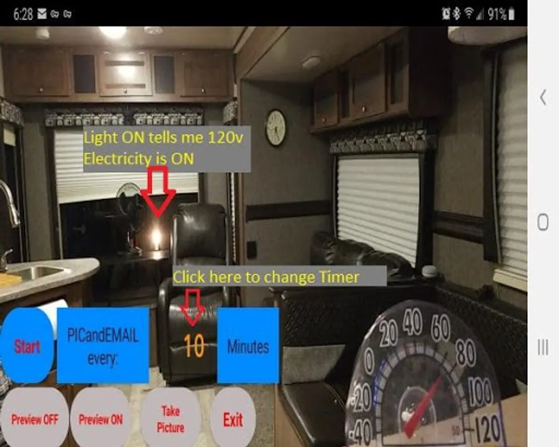 I created PICandEMAIL to keep an eye on my dog(Nina) in our camper when we leave the campground for a few hours. I point the camera inside the camper with a thermometer in sight. If i get an email picture that show the temperature is getting hot or electricity has cut off, I know to rush back to the campground to save my dog.