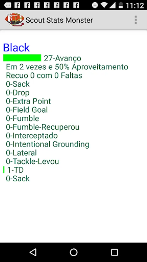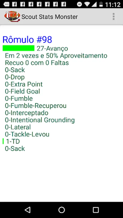 From the Player graph the Coach can analyze which one was the best player, which one had the biggest advance, which one was intercepted, which one made the most fouls, which one got the TD.