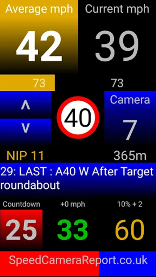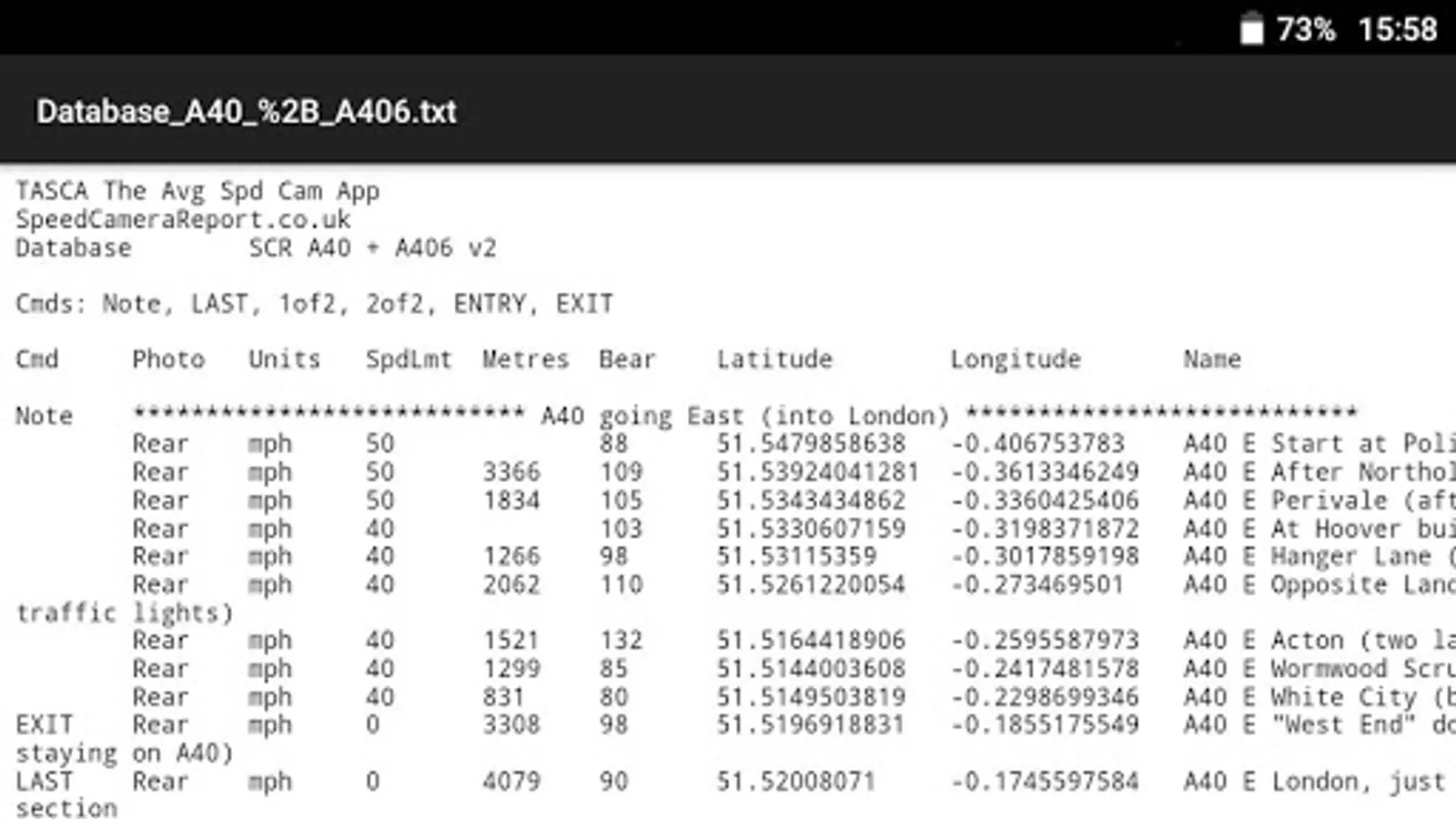 . . . 1: A summary of the sections between average speed cameras including distance, time and average speed.