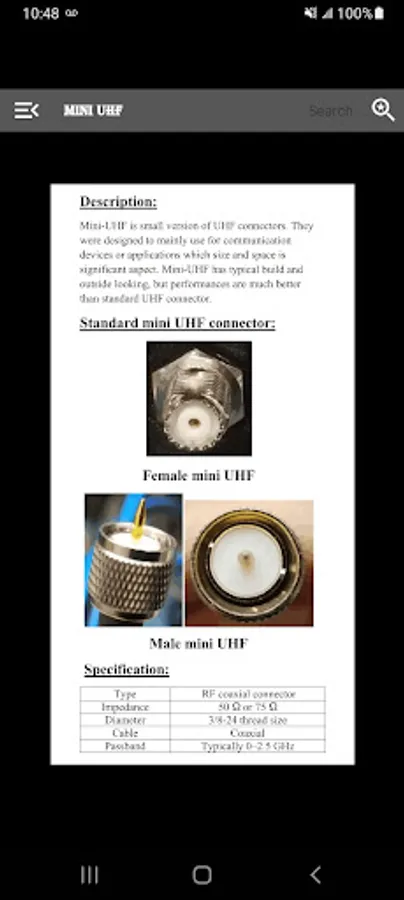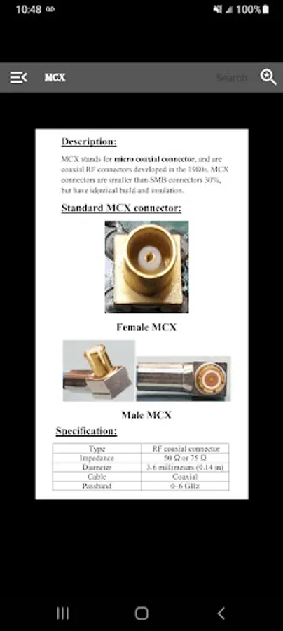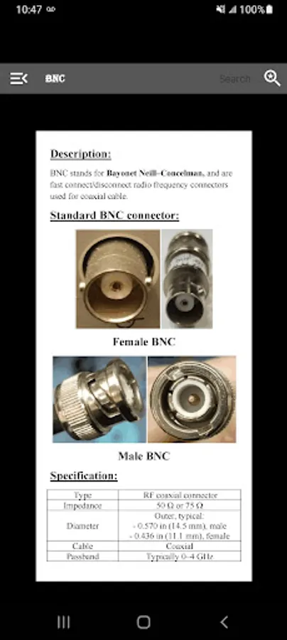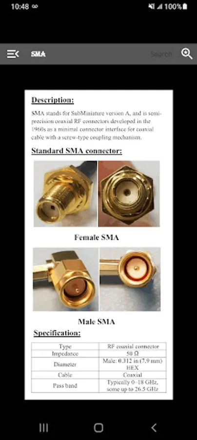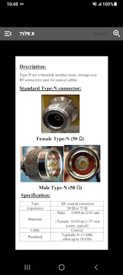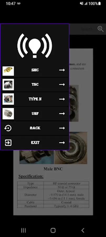 This application was designed to help people who work in RF, Radio Frequency field quickly know what type of connector they are using. Our team also make some short introduction, and standard working frequency condition of each connector. We aren't manufacturer, and only enthusiastic in RF career.