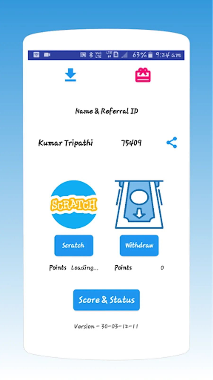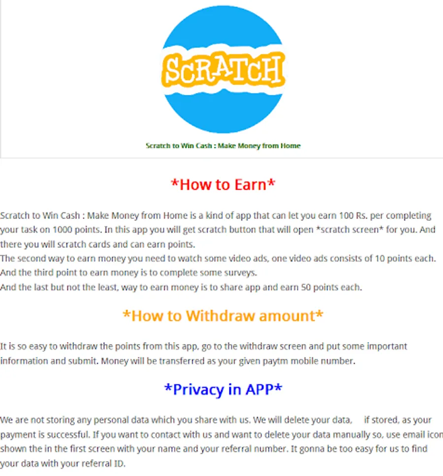 Scratch to Win Cash : Make Money from Home is a kind of app that can let you earn 100 Rs. per completing your task on 10000 points. In this app you will get scratch button that will open *scratch screen* for you. And there you will scratch cards and can earn points.