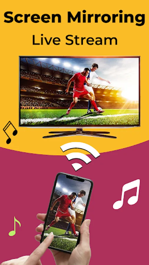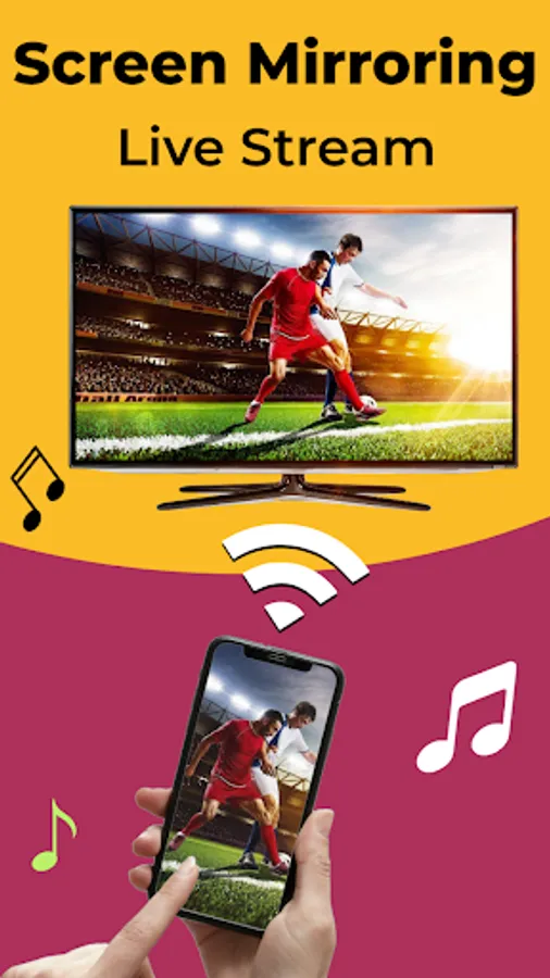 Screen Mirroring with Music TV and Mobile Stream To TV with Miracast for android is an Excellent Casting App. Now connect your phone to TV Screen with Just One Click through this Screen mirroring app. Mirror Phone Screens & Watch Live Video Streaming and Movies on big screens. Live Screencast is a beautiful app to Connect & mirroring your phone onto your Smart TV. Screencast App provides a Smart TV View with the new screen mirroring Wireless display.