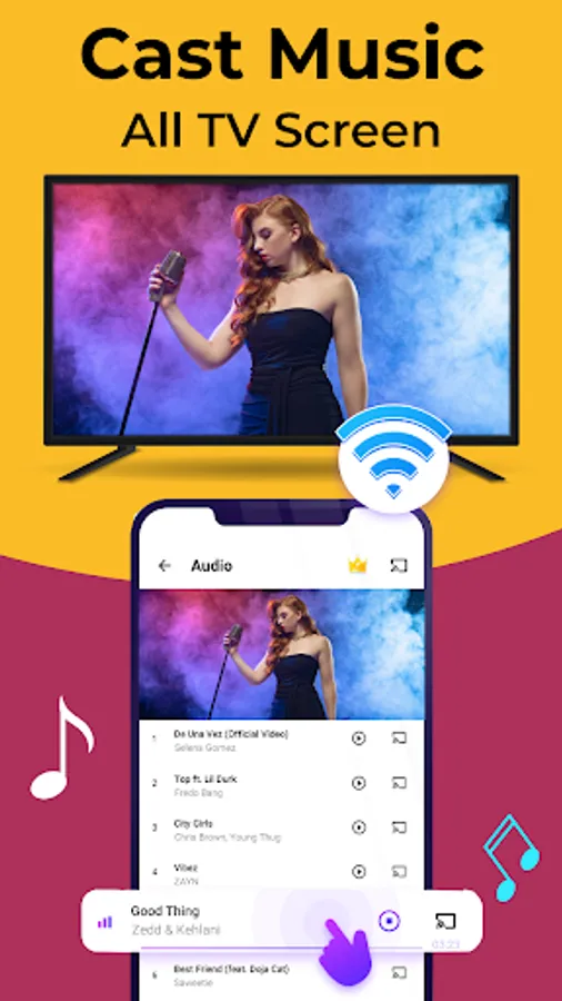 Screen Mirroring App contains both a music and audio player. Now You can enjoy all popular songs and audio formats on your Phone or TV if you connect through a Screen Mirror. Music Player is the best music player for Android. Audio Player for All Types of Audio Formats.