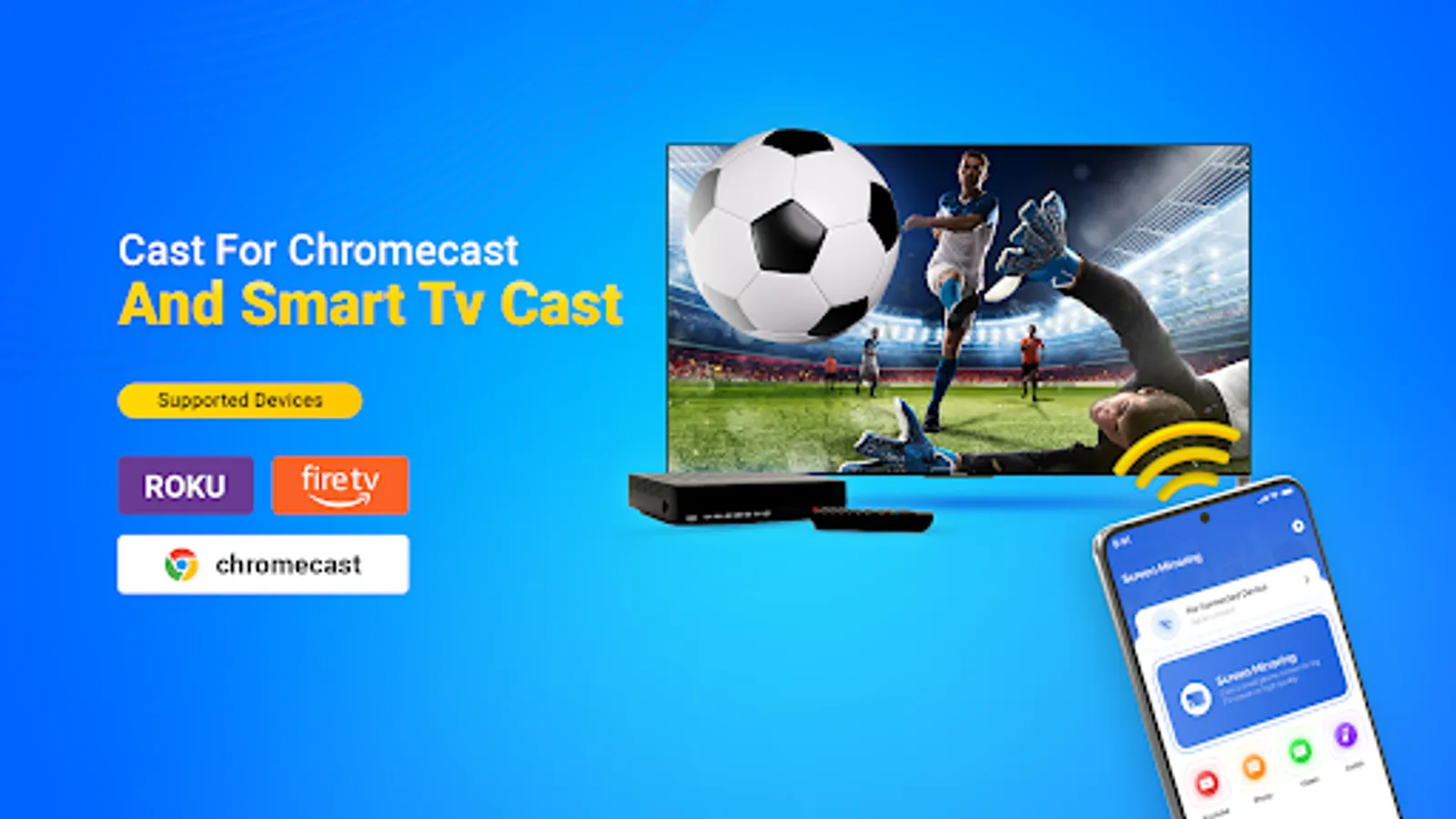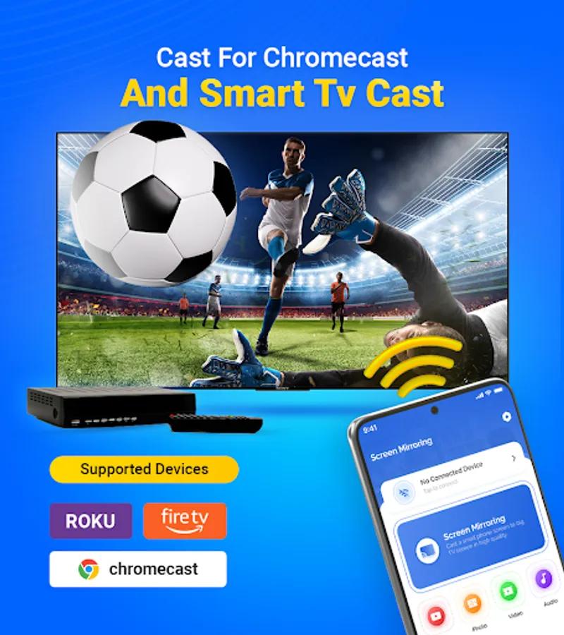 "📱🔗📺 Screen mirroring app allow you to mirror your device screen to a large display, Enjoy the convenience and flexibility of TV Cast. With powerful features like Chromecast, Roku, Miracast free, and more, TV Screen Mirroring makes sharing content between your mobile devices to the TV screen."