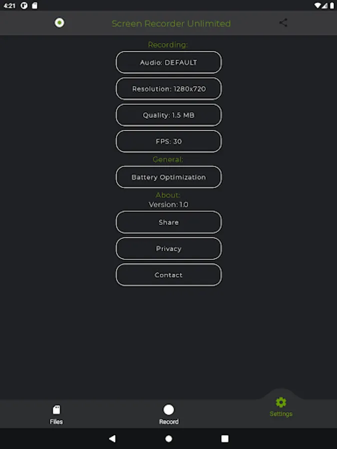 Our app lets you easily record your screen with just a few taps, making it perfect for creating tutorials, sharing gameplay footage, or capturing important moments. With high-quality video and audio recording, you can be sure that every detail is captured in stunning clarity. Plus, our app is packed with features to make your recording experience even better. Whether you're a content creator, gamer, or just need to capture your screen for work or personal use, our app has got you covered. Download now and start recording like a pro!