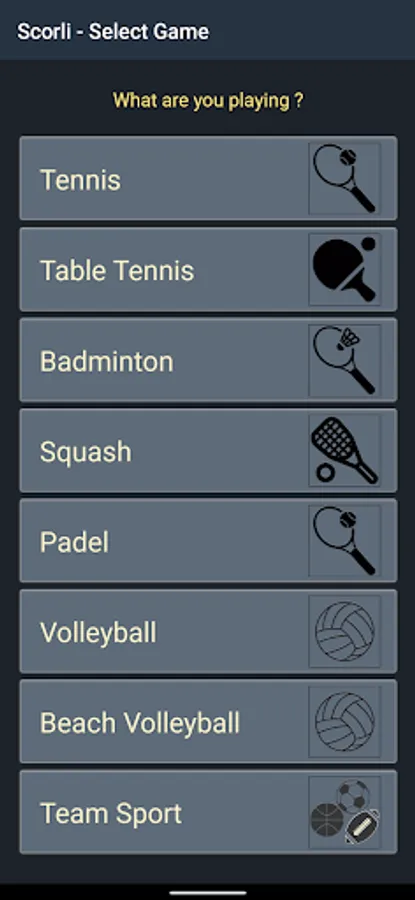 Tennis, Table Tennis, Badminton, Squash, Padel, Volleyball, Beach Volleyball, Team Sport