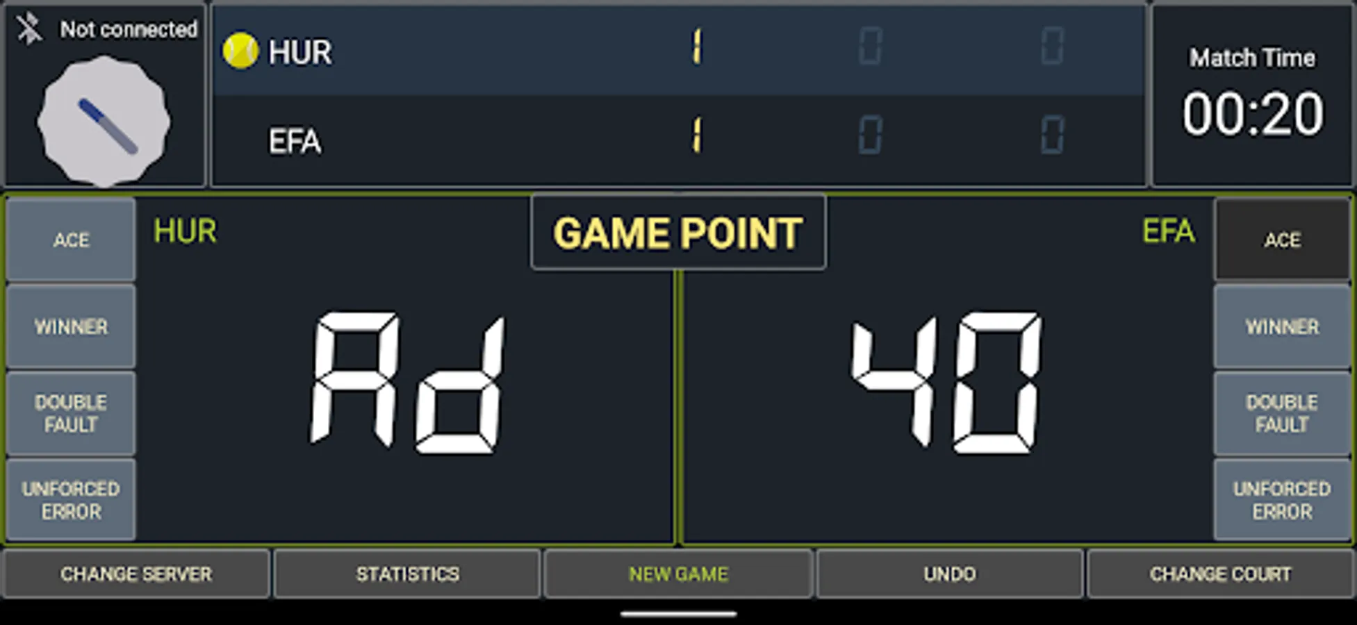 The application can run stand-alone, or connect via Bluetooth to a Scorli Scoreboard or to a remote board via Internet.