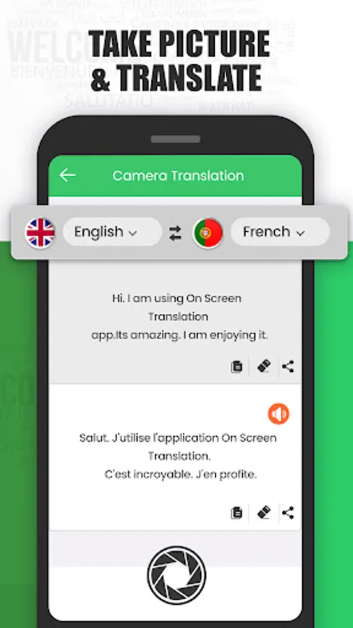 The fastest real-time translator also acts as OCR text scanner; scan any text on the screen and also text on image. Free finger text translation app is real-time text translation for phrases and words and allows users to copy the translated text.
