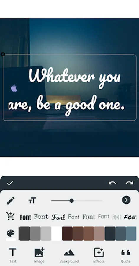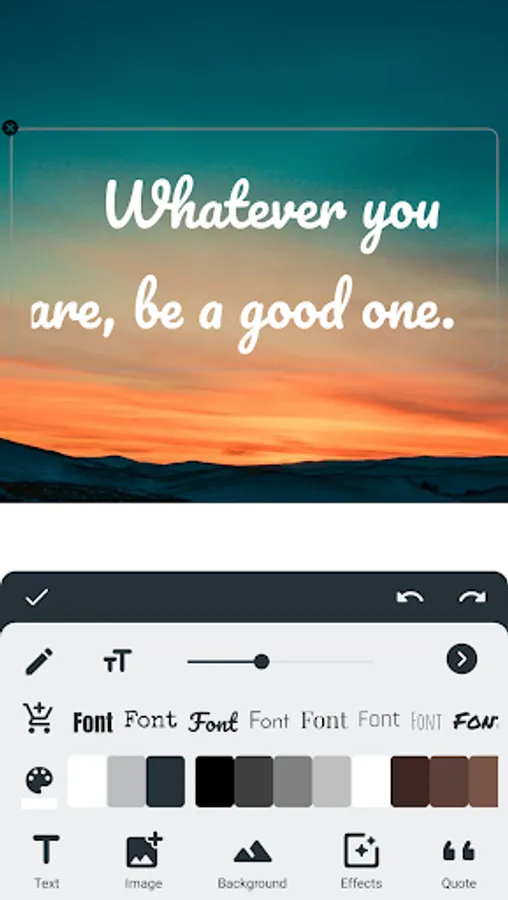 Quotes Creator, Picture quotes is the most efficient way to create and find Instagram posts. The app offers options to choose a photo from your gallery as a background, align text, toggle between light and dark mode, and more...