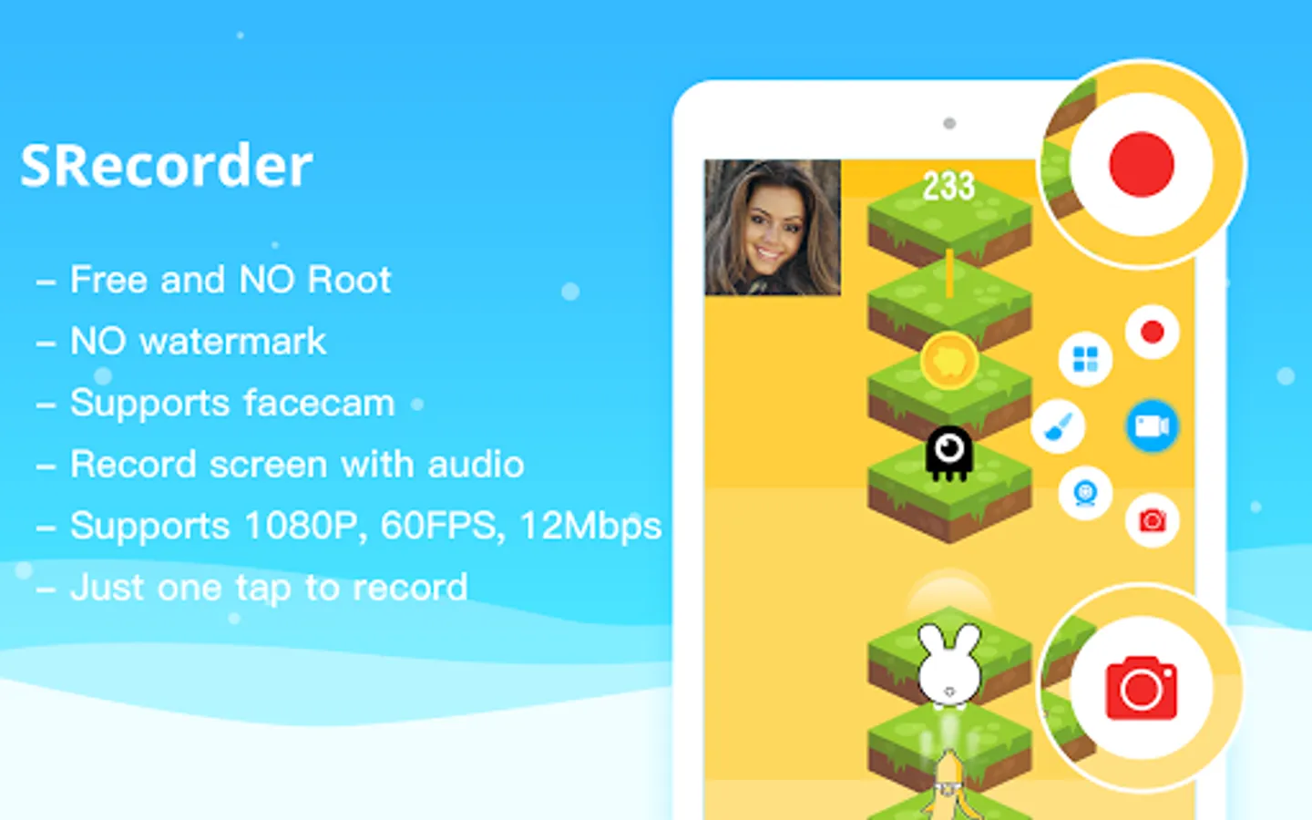 SRecorder can record videos with facecam, enable front or back camera to capture your reactions while screen recording, very useful for playing games or making teaching videos!