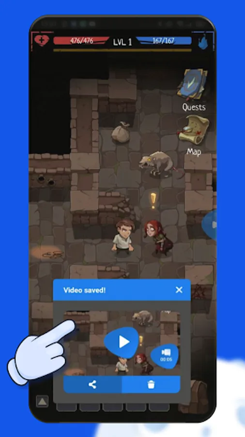 This app comes with a simple yet powerful overlay widget that allows access to the app from any screen, including during games. In fact this app is fantastic for gamers. Record your gameplay with or without sound and comms.