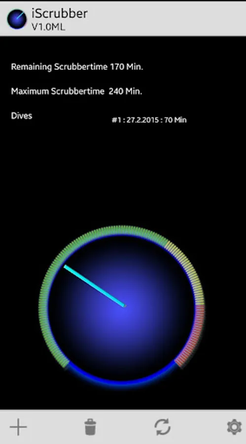 With this simple tool, it is now very easy to determine the remaining Scrubbertime. You can set the maximum scrubber capacity in the settings and choose their language (German or English). Then you can save your dives with date and time. The dives can be individually deleted or to delete them all at once, for example if you a new Scrubber use.