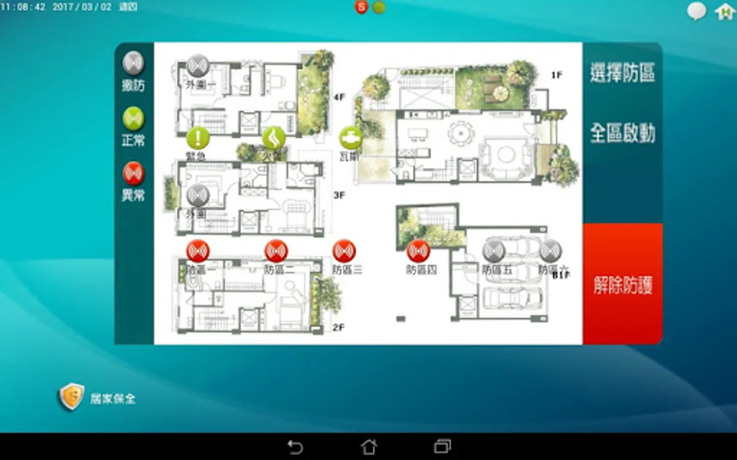 出門前,啟動保全系統,當發生人為入侵、瓦斯、緊急、火警…等事件,可即時通過推播訊息通知 App,即時瞭解突發事件狀態。